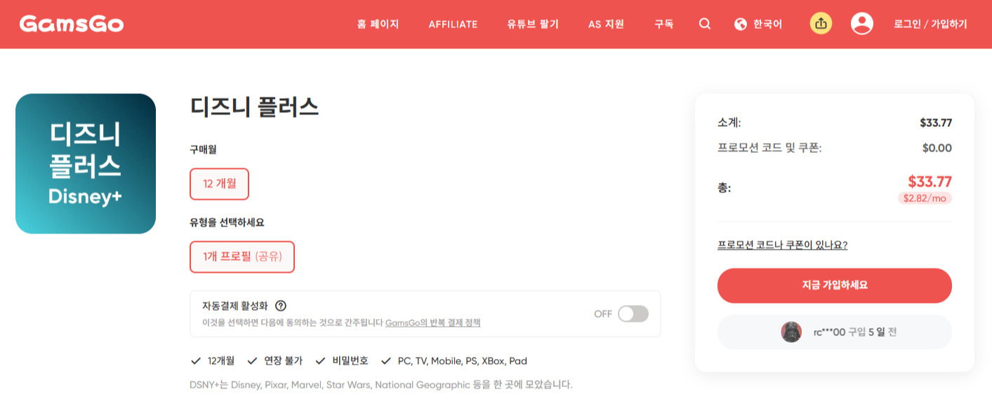 저도 처음엔 그냥 결제했지만, 공식 공유 플랫폼 GamsGo를 알게 된 후 3,000원대로 프리미엄 계정을 쓰고 있어요.